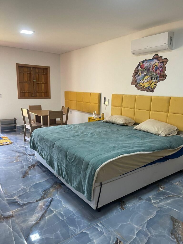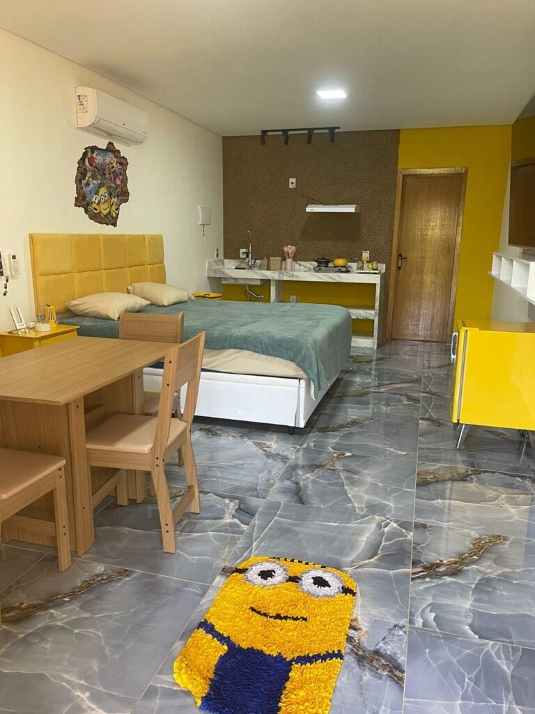 A Suíte dos Minions do Rancho Tróia é pura diversão e encanto! Inspirada nos adoráveis e travessos personagens, essa suíte temática traz um ambiente colorido, alegre e repleto de detalhes que fazem você se sentir dentro do universo dos Minions. Perfeita para famílias, casais ou fãs da animação, ela combina conforto e uma experiência imersiva inesquecível. Venha se divertir e viver momentos especiais em um espaço cheio de magia e bom humor!
