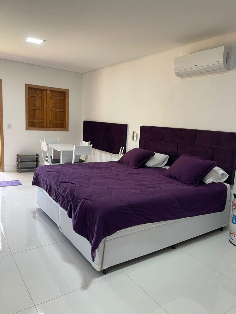 A Suíte Roxa do Rancho Tróia é sinônimo de elegância, mistério e charme. Com uma decoração envolvente e tons sofisticados, esse espaço foi pensado para quem busca um refúgio romântico e aconchegante. A iluminação suave e os detalhes cuidadosamente planejados criam uma atmosfera única, perfeita para momentos especiais a dois ou para quem deseja relaxar com estilo. Venha viver uma experiência inesquecível, onde conforto e requinte se encontram na Suíte Roxa!